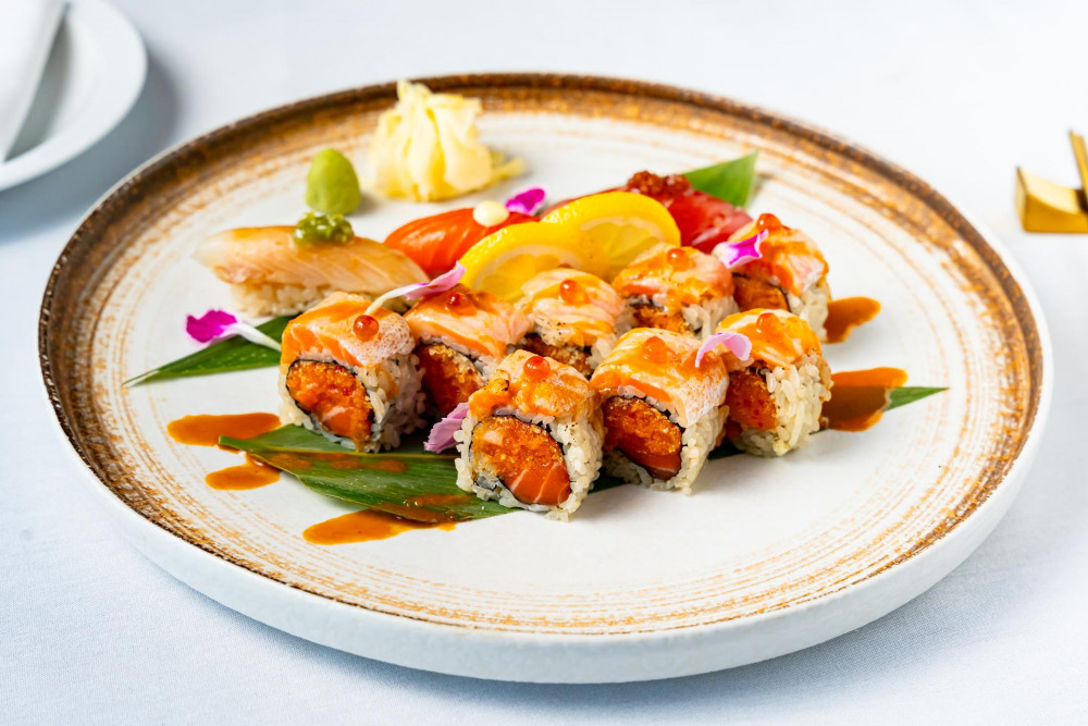 Choice of Tuna, Salmon, Yellowtail, 6 sashimi, 4 sushi, spicy roll, tartare