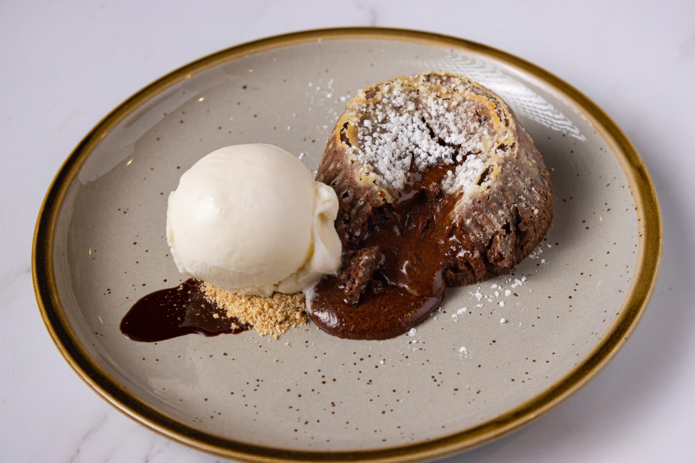 liquid-center chocolate cake Tahitian vanilla ice cream