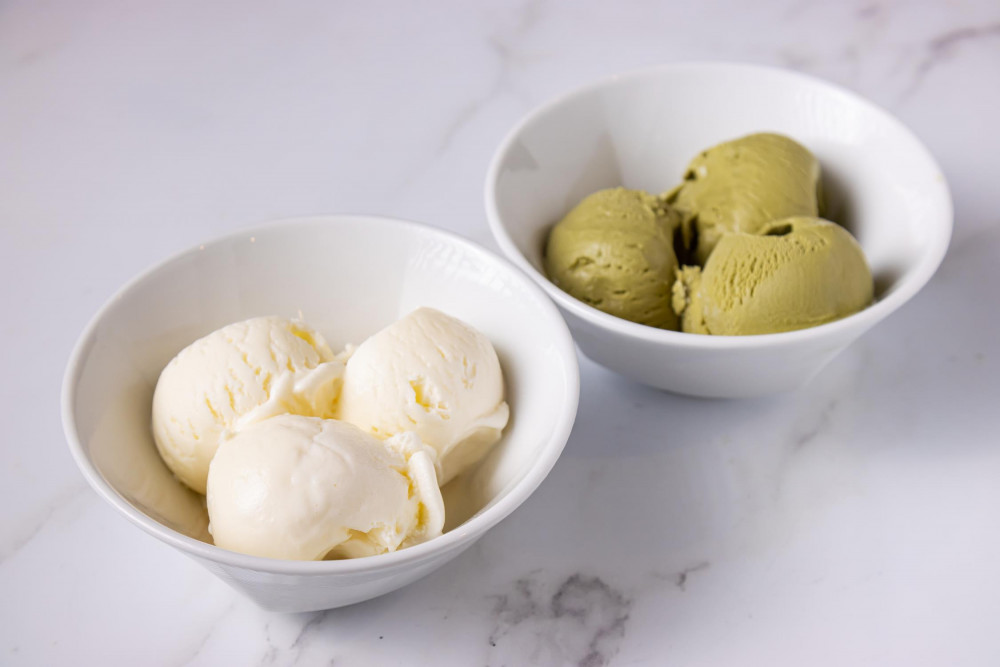 pounded sticky rice cake with an ice cream filling vanilla or green tea