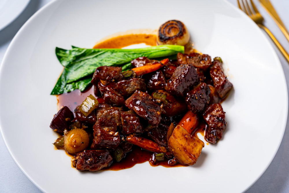 choice of: chicken or beef tenderloin ($10)tangy sweet spicy sauce, crispy brussels sprouts