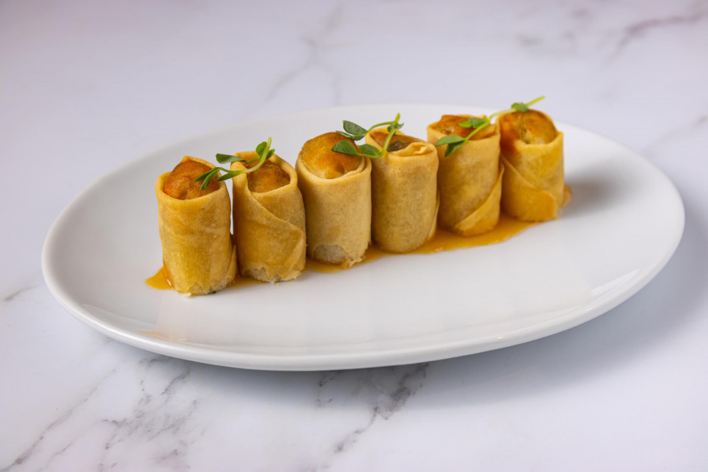 vegetable edamame dumpling, mini truffle wagyu beef bao,