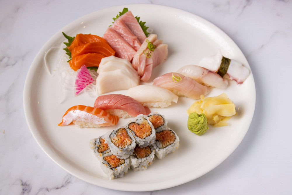 18 sashimi, 10 sushi & choose 1 roll from the signature roll (except Ultimate Toro Roll)
