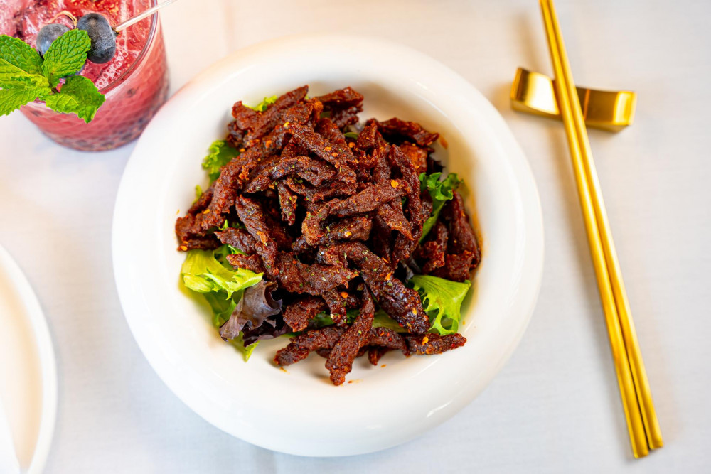 crispy shredded flank steak, peppercorn, chili