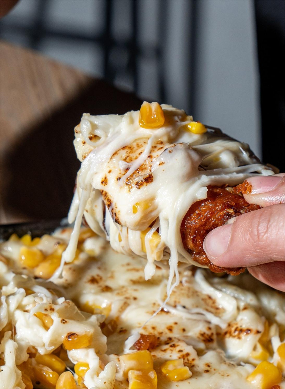 sweet corn, mozzarella cheese topped