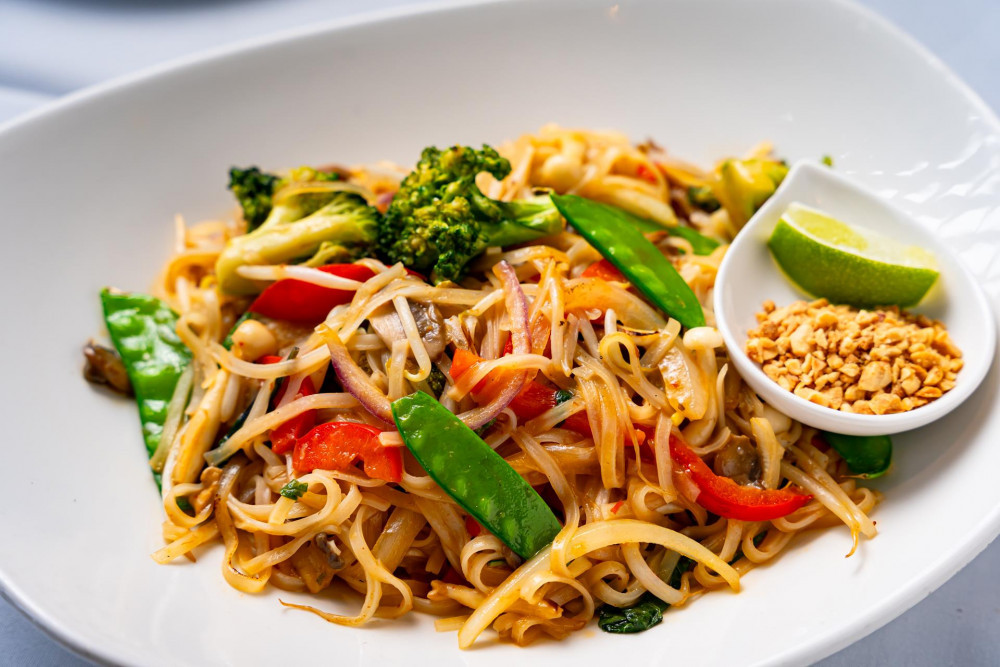 stir fried rice noodle, choice of: vegetable / chicken $1 / shrimp $2 / beef $ 2