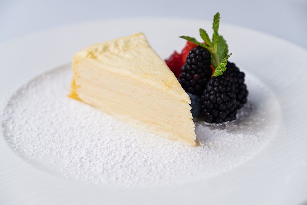 Handmade crepes layered with Ethereal light pastry cream. Delicate and irresistible