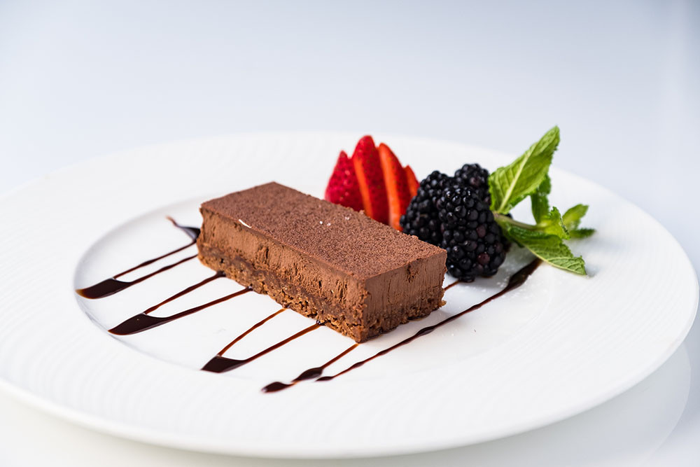 Crunchy bottom made with imported wafer and homemade hazelnut praline and silky chocolate mousses