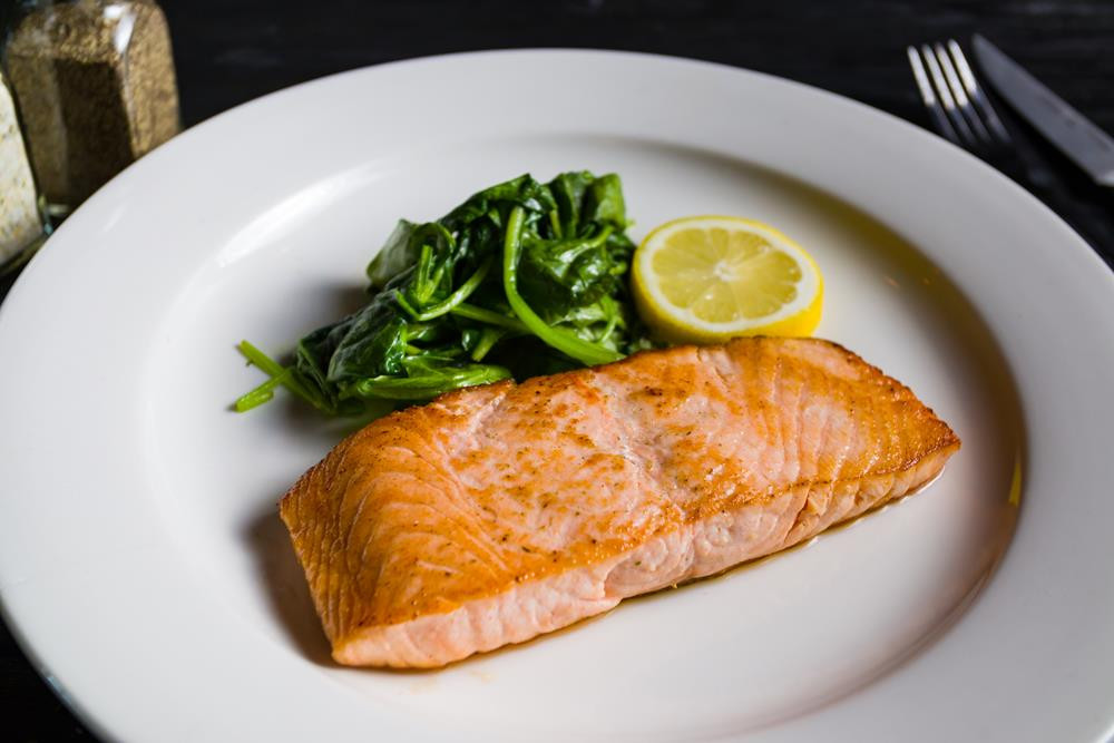 Pan seared served with sauteed spinach