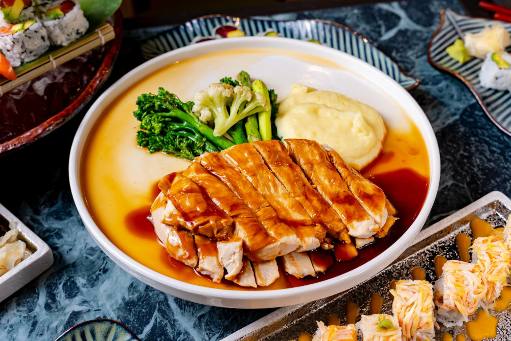 Grilled Chicken, Half Marinated Egg, Corn, Bamboo Shoots, Scallion, Sliced Kikurage