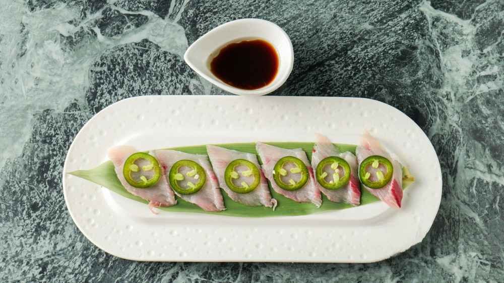 tuna with yuzu wasabi vinaigrette & avocado salmon with gingered miso. creme fraiche, saikyo miso