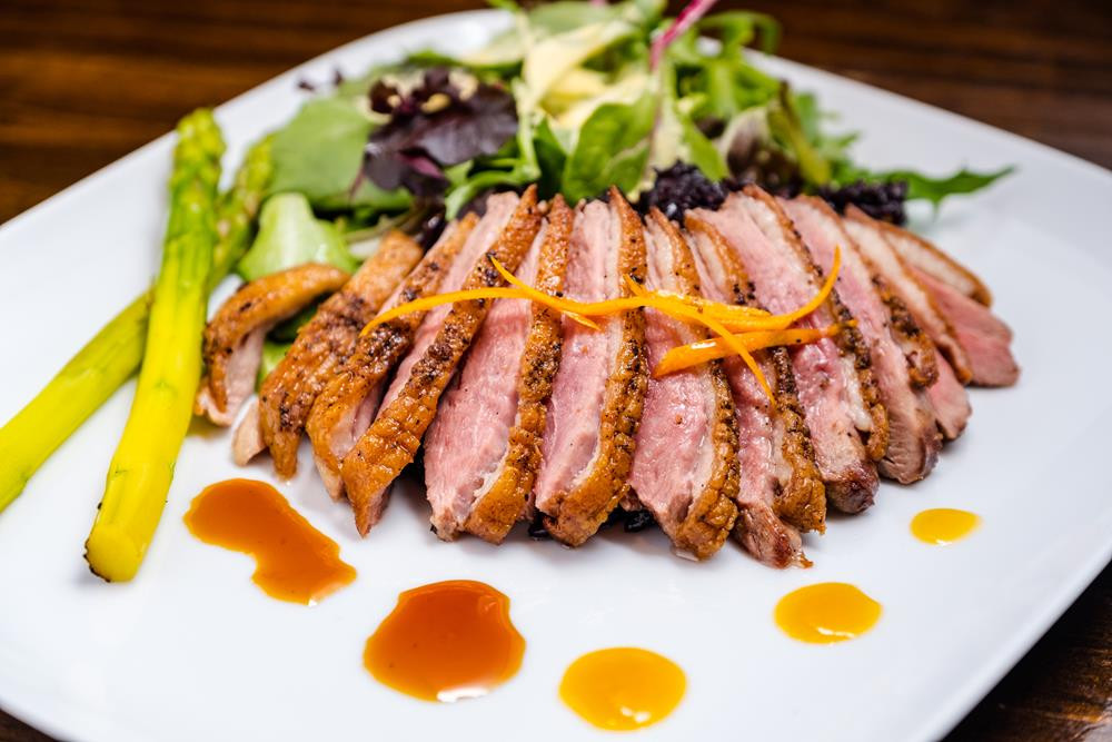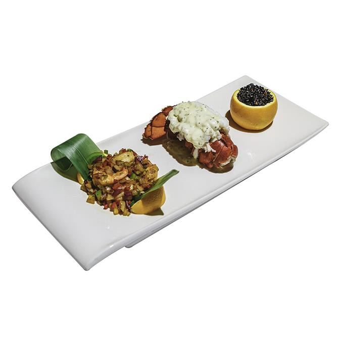 5 oz. fresh lobster tail & shrimp in lemon-butter sauce. Side of honey flavored black rice
