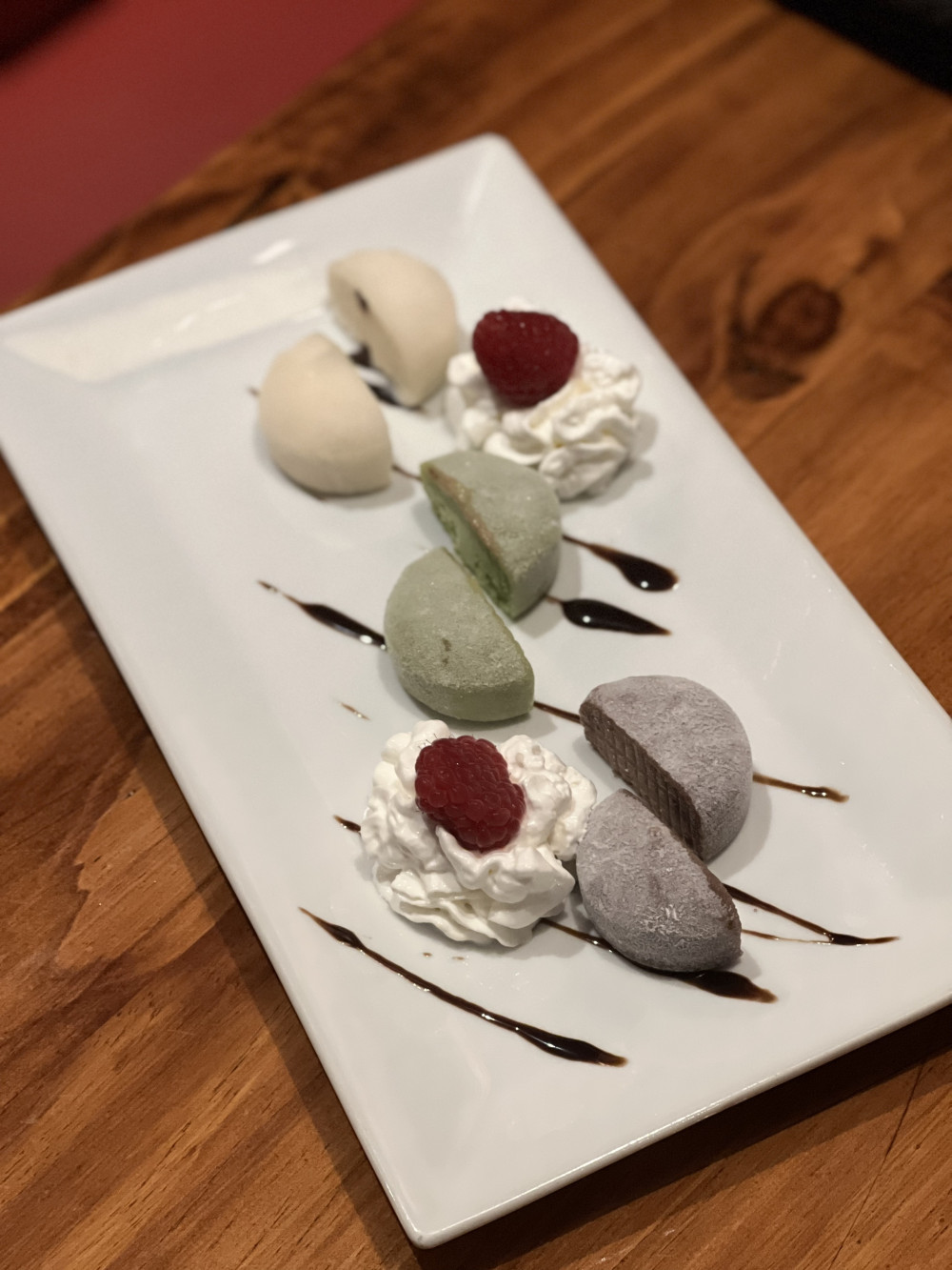 Choice of dark chocolate, green tea, black sesame, pistachio, espresso or strawberry