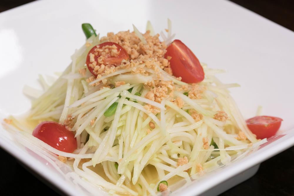 Mango, tomato, cucumber, olives, carrot, ginger dressing