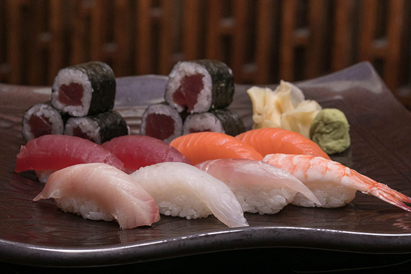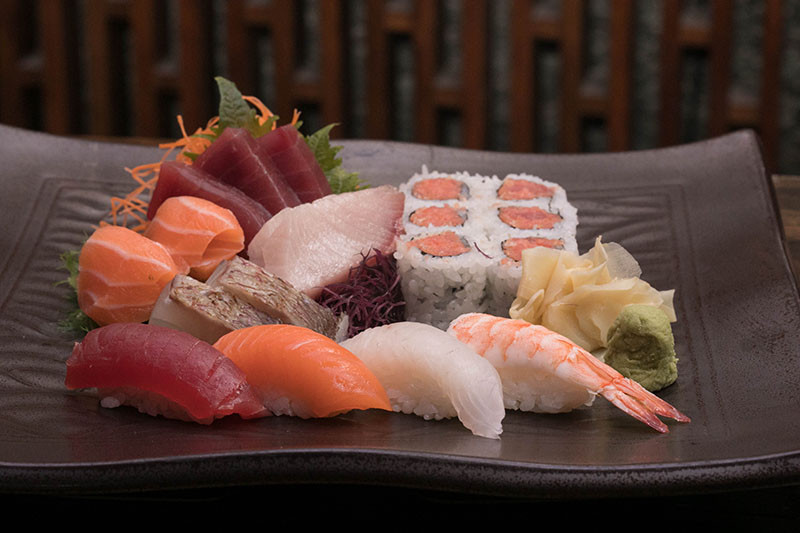 4 pcs of Sushi, 4 pcs of Sashimi and a Roll of your choice