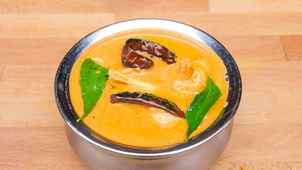 Prawns in coconut sauce, green chilies, ginger juice curry leaves and mustard seed